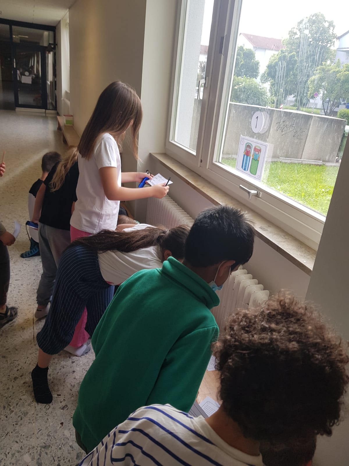 Los ging es mit einer Schnitzeljagd durch das Schulhaus. Auf drei Stockwerken verteilt